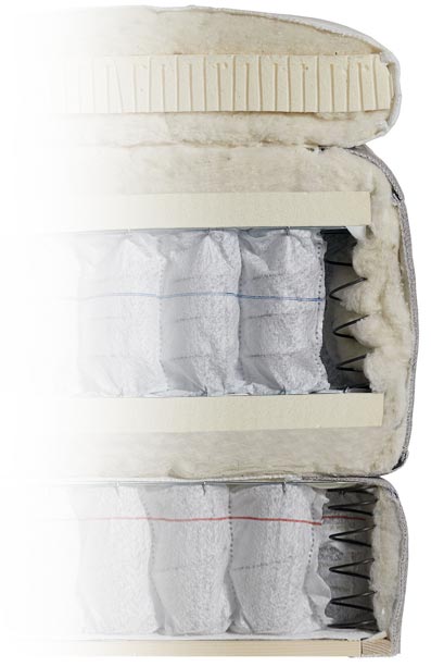 Tutkimustyön pohjalta olemme luoneet Kamjo Ming -jenkkisänkyyn täysin uuden patjarakenteen, jossa on viisi erilaista taskujousiosiota, joiden erilainen jäykkyys tukee kaikkia kehon osia juuri oikealla tavalla. Kehonosat ovat eri tavalla kaarevat, joten ne tarvitsevat erilaista tukea, jotta koko keho lepäisi.